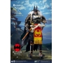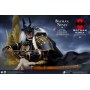 This new 1/6 figure from Batman Ninja features Batman in his ceremonial samurai armor complete with red tabard with the bat-symbol and high sandals. The head sculpt features Batman in mid-battle yell as he rides into battle with his foes. He’s outfitted with two katana, two batarangs and two ninja daggers (Kunai).